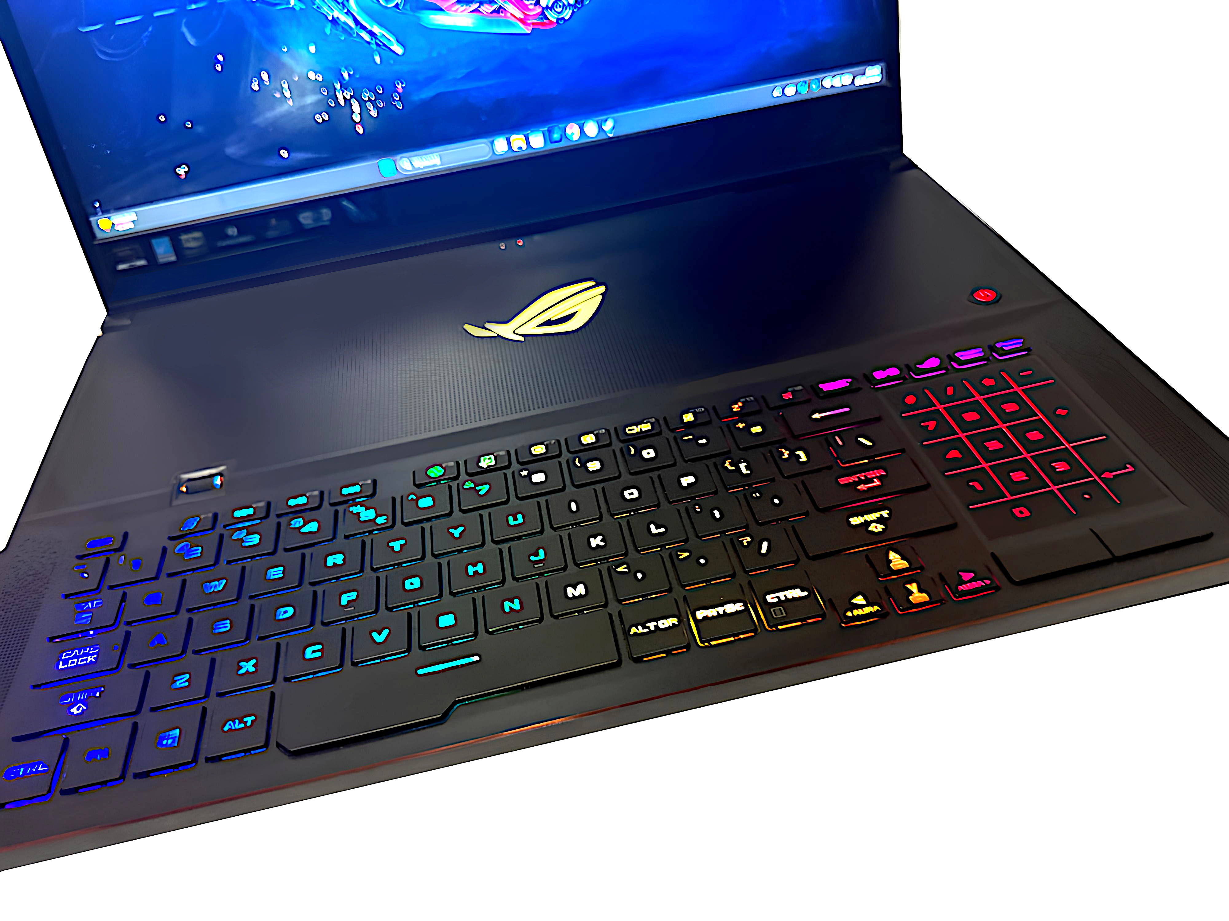 Klawiatura w ukadzie desktopowym została przesunięta w najchłodniejszy obszar urządzenia, dzięki czemu możesz godzinami grać w pełnym komforcie. Możesz również spersonalizować podświetlenie RGB pod kątem różnych gier i zastosowań, a także zsynchronizować kolory i efekty z oświetleniem kompatybilnych urządzeń peryferyjnych przy użyciu Aura Sync. Podświetlone jest też wyjątkowe pokrętło głośności umieszczone w pozycji umożliwiającej szybką regulację oraz blok numeryczny, który jest wyświetlany na touchpadzie.